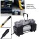 Double Cylindre Haute Performance : Assure un gonflage rapide et puissant, idéal pour les pneus de voiture, moto, SUV et plus encore.Manomètre Analogique Précis : Permet un contrôle exact de la pression jusqu’à 150 PSI pour un gonflage sécurisé.Alimentation 12V : Fonctionne avec l’allume-cigare du véhicule pour une utilisation pratique lors de vos déplacements.Kit de Réparation Inclus : Comprend des outils essentiels pour réparer rapidement les crevaisons sur la route.Construction Robuste : Conçu avec des matériaux durables pour résister à une utilisation intensive.