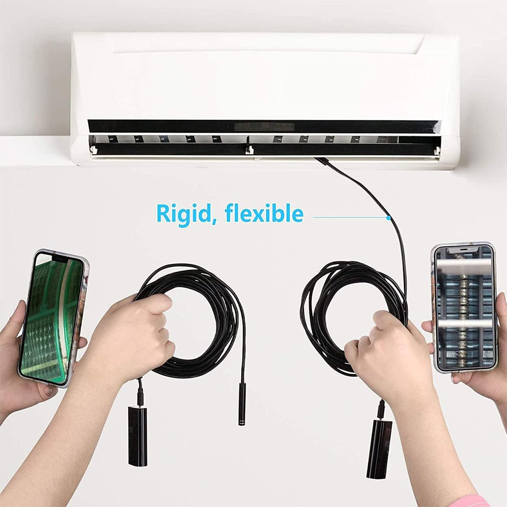 يعمل هذا المنظار اللاسلكي بتقنية WiFi مع أنظمة Android / iOS / iPad / Windows. مزود بكابل شبه صلب قابل للانحناء، يمكنه الوصول بسهولة إلى أضيق الزوايا داخل منزلك أو سيارتك أو الأجهزة الإلكترونية 🧰.