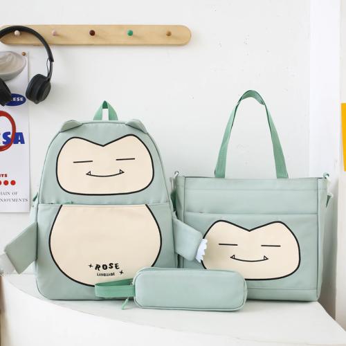 Ensemble de Sacs Snorlax 3Pcs Design Kawaii Vert – حقيبة مدرسية 3 قطع لون أخضر