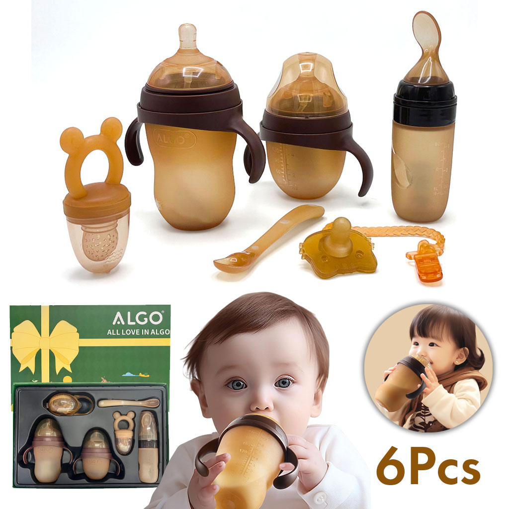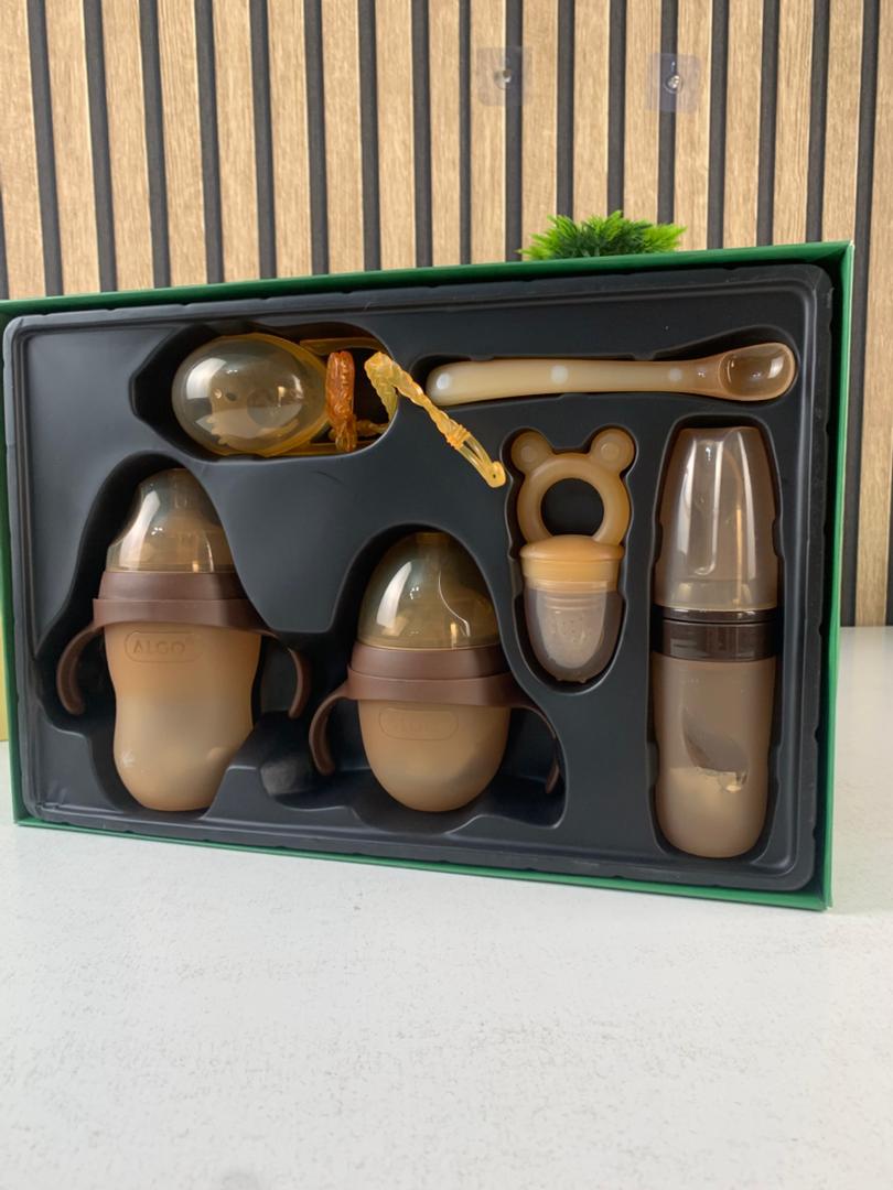 أكواب مع فتحة شرب مع مقابض مريحة ليد الطفل 🤲.ملعقة مريحة مثالية للوجبات الأولى 🍽️.لهاية مع مشبك للحفاظ عليها من السقوط 🔗.مخدّم طعام على شكل دُب لتقديم الأطعمة الصلبة بشكل آمن 🐻.زجاجة مع فوهة ملعقة مثالية للمهروس والصلصات 🥄.🌟 ميزات رئيسية: