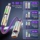 شحن عالمي 4 في 1: كابل واحد يناسب معظم الأجهزة الذكية.شحن فائق السرعة 240 واط:حتى 65 واط للهواتف.حتى 240 واط لأجهزة الكمبيوتر المحمولة عبر Type-C.دعم شحن Lightning بسرعة 12 واط.مؤشرات LED ذكية: تعرض حالة الشحن بألوان مختلفة، مثالية في الإضاءة الضعيفة.نقل بيانات عالي السرعة: سرعة تصل إلى 480 ميجابت/ثانية، أسرع بثلاث مرات من الكابلات العادية.متانة عالية: كابل بطول 100 سم مقاوم للتشابك، مع موصلات من سبائك الزنك وسيليكون مرن بجودة عسكرية لتحمّل الاستخدام اليومي.