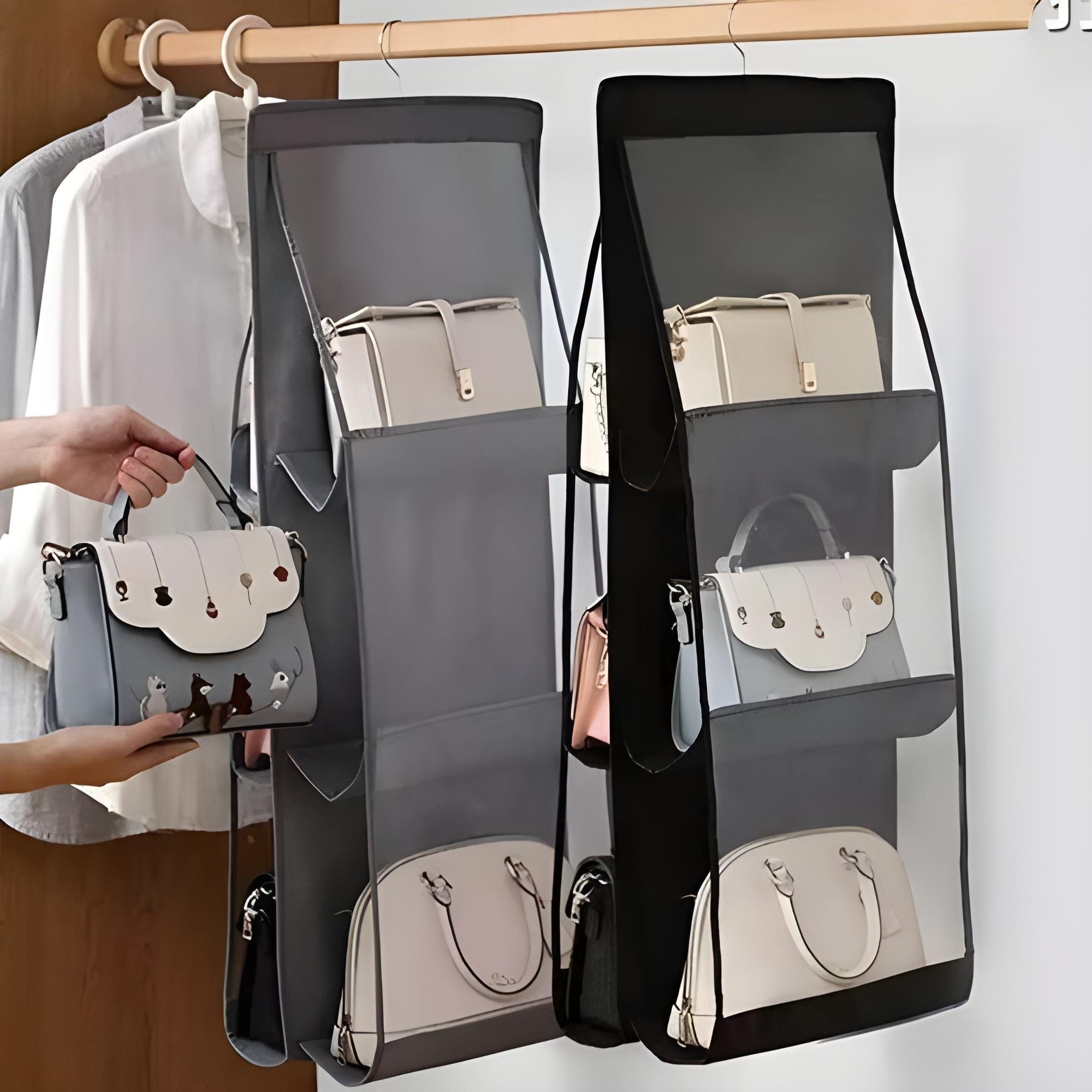Si vous êtes manusaccaphile, ce porte-sac à main est fait pour vous.Son système pratique permet de ranger, trier, protéger 6 de vos sacs (ou chaussures) dans votre dressing ou même sur une porte.L’organisation par pochettes permet de retrouver facilement votre précieux :).Qu’il soit en cuir, en bandoulière ou même de marque guess , desigual ou long champ, votre sac préféré sera bien rangé.