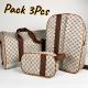 Pack 3Pcs Cabas Sac a Dos et Pochette en Tissue Imperméable Beige