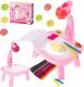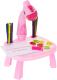 Une table avec un projecteur6 superpositions avec 6 images à redessinerÉponge abrasiveCarnet de dessin pour photosSet de 12 marqueursMatière : plastiqueÂge de l’enfant : 3+Alimentation : 3 piles AA (non incluses)Dimensions :