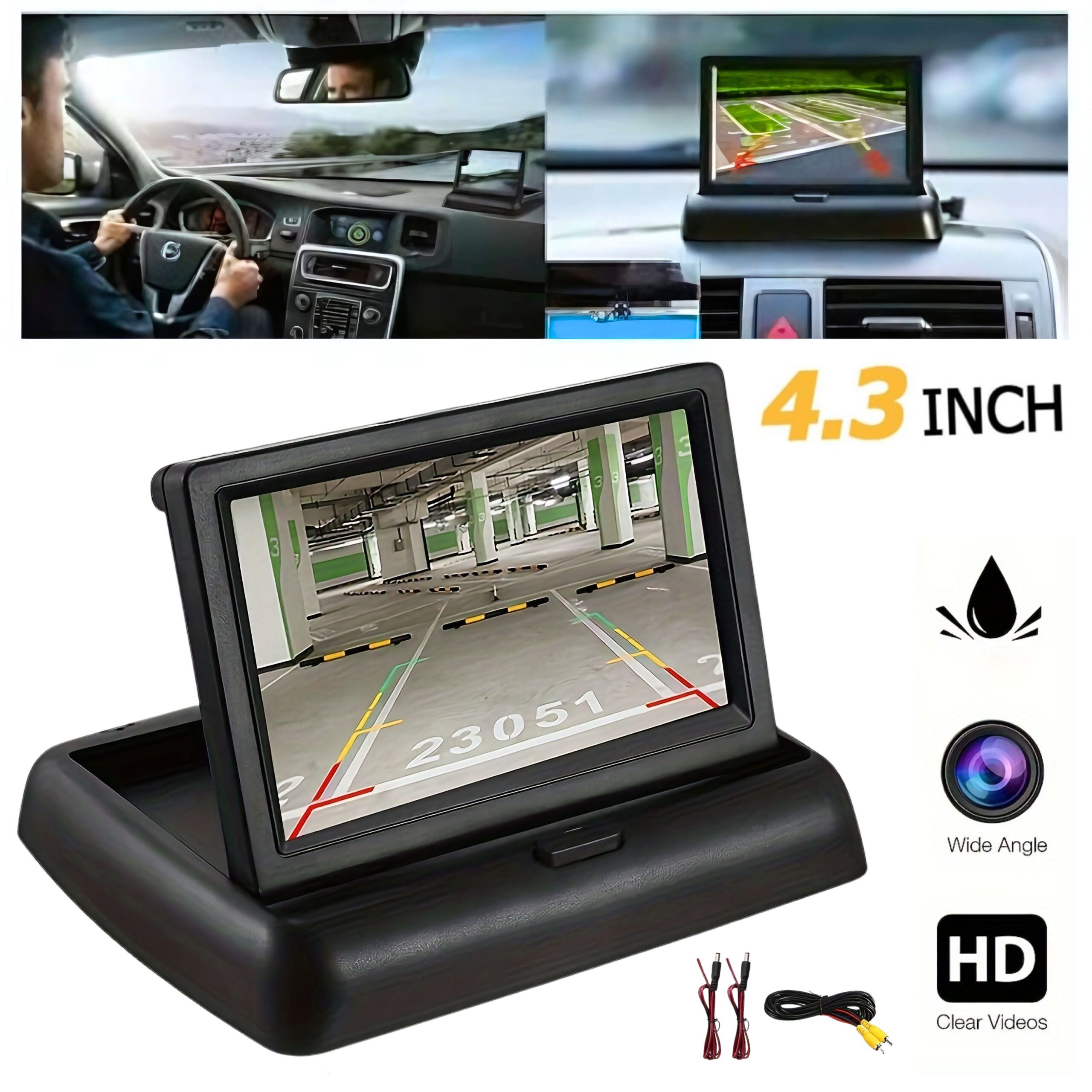 Écran LCD de 4,3 Pouces : Offre une résolution de 480x272 pixels pour une image claire et nette.Design Pliable et Motorisé : Se replie facilement lorsqu'il n'est pas utilisé, préservant l'espace et protégeant l'écran.Compatibilité Universelle : Fonctionne avec la plupart des systèmes de caméra de recul et autres sources vidéo.Installation Facile : Peut être monté sur le tableau de bord ou le toit du véhicule, selon les préférences.Contrôle de l'Image : Boutons de réglage pour la luminosité, le contraste et la saturation, permettant une personnalisation de l'affichage.