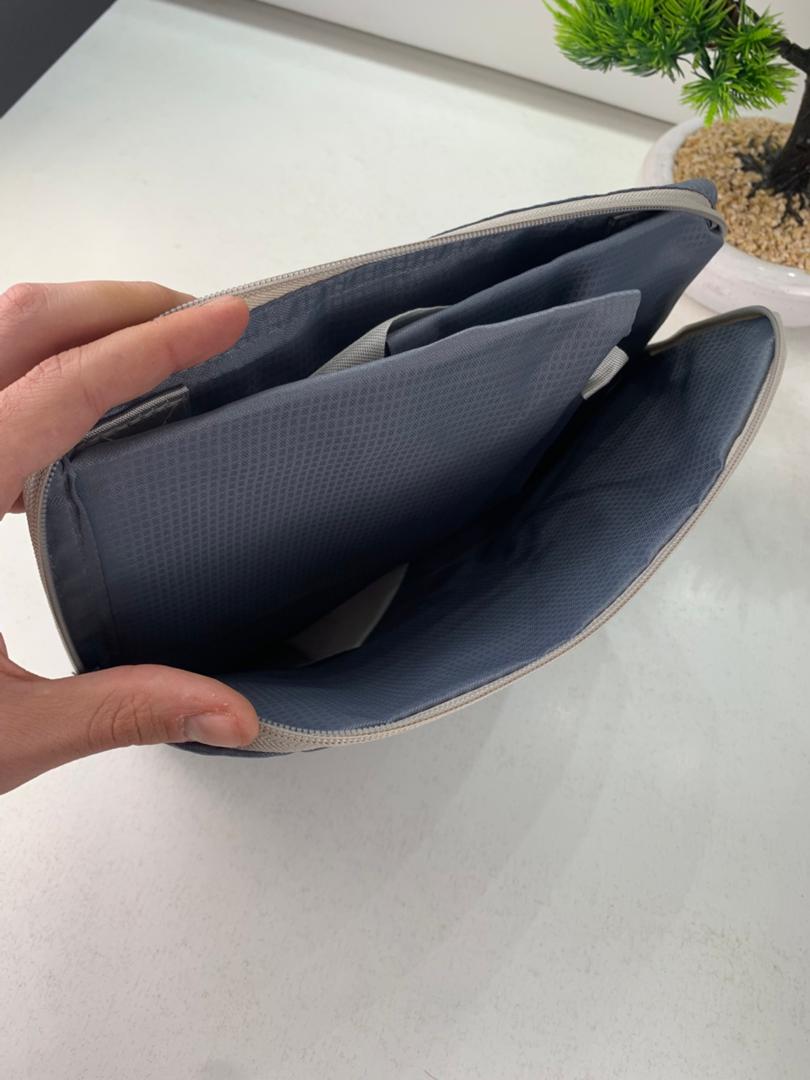 حجرة رئيسية واسعة تكفي للملابس، الأحذية، وأدوات النظافة، مع جيب بسحّاب لحفظ الأغراض الصغيرة.