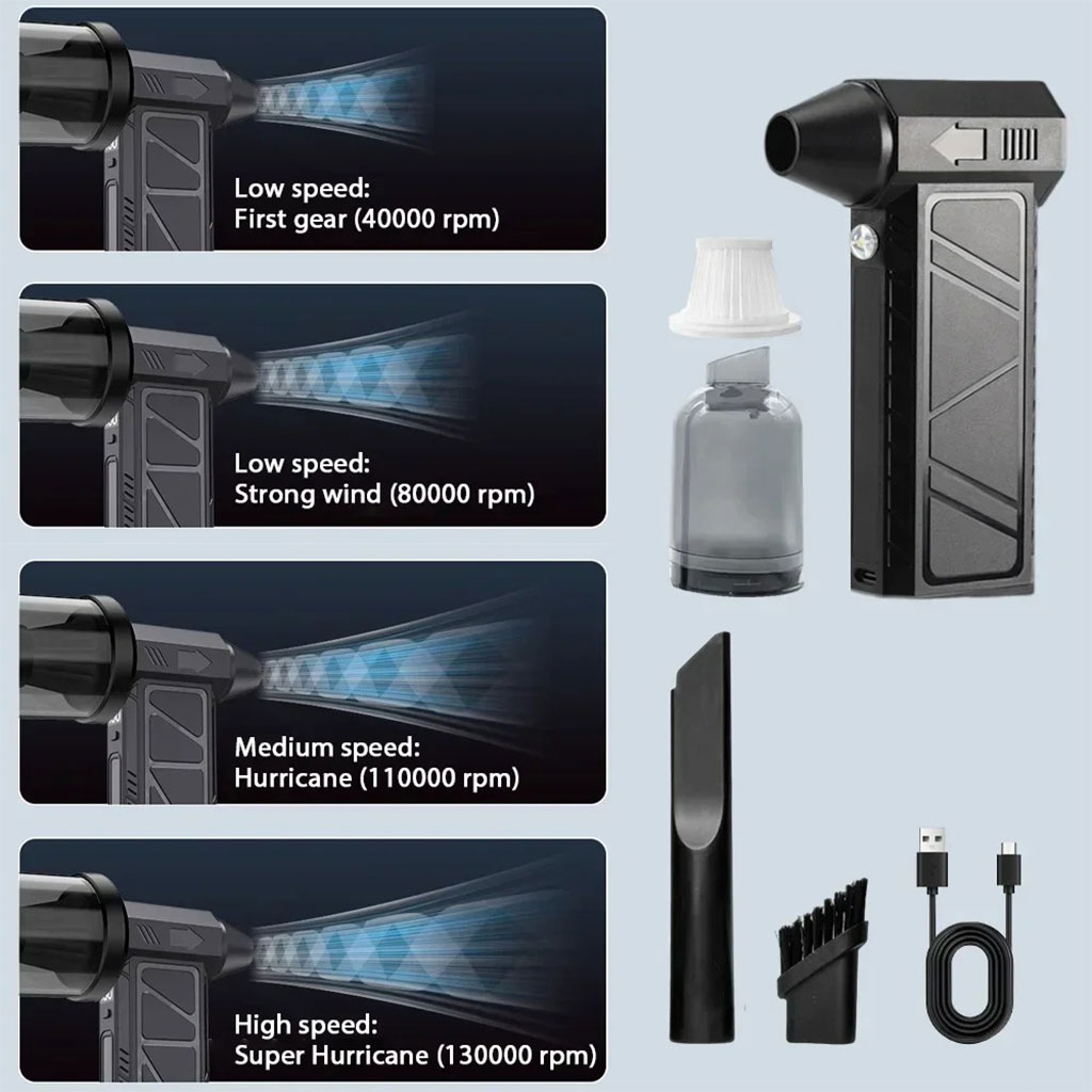 ⚡️ مروحة توربو محمولة فائقة القوة 130000 دورة/دقيقةقوة رياح خارقة: